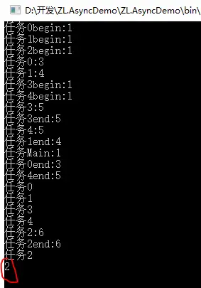 async static Task<string> DoTask(int i) { Console.WriteLine("任务" + i+ "begin:" + Thread.CurrentThread.ManagedThreadId); await Task.Run(() => Console.WriteLine("任务" + i+ ":" + Thread.CurrentThread.ManagedThreadId)); val = i.ToString(); Console.WriteLine("任务" +i+ "end:" + Thread.CurrentThread.ManagedThreadId); return "任务"+i;