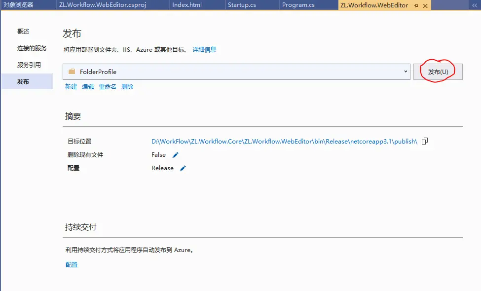 按“创建配置文件”按钮,创建一个发布配置: